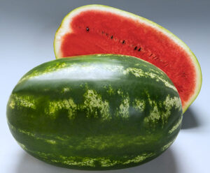 Crimson Sweet type watermelon. Productive variety with vigorous vines and good covering. The weight is 12-14 kg on average. The fruit shape is elongated, with a nice external colour and attractive internal red colour. It has a very good taste and high sugar content (Brix 11-13). Recommended for both grafting and no grafting.